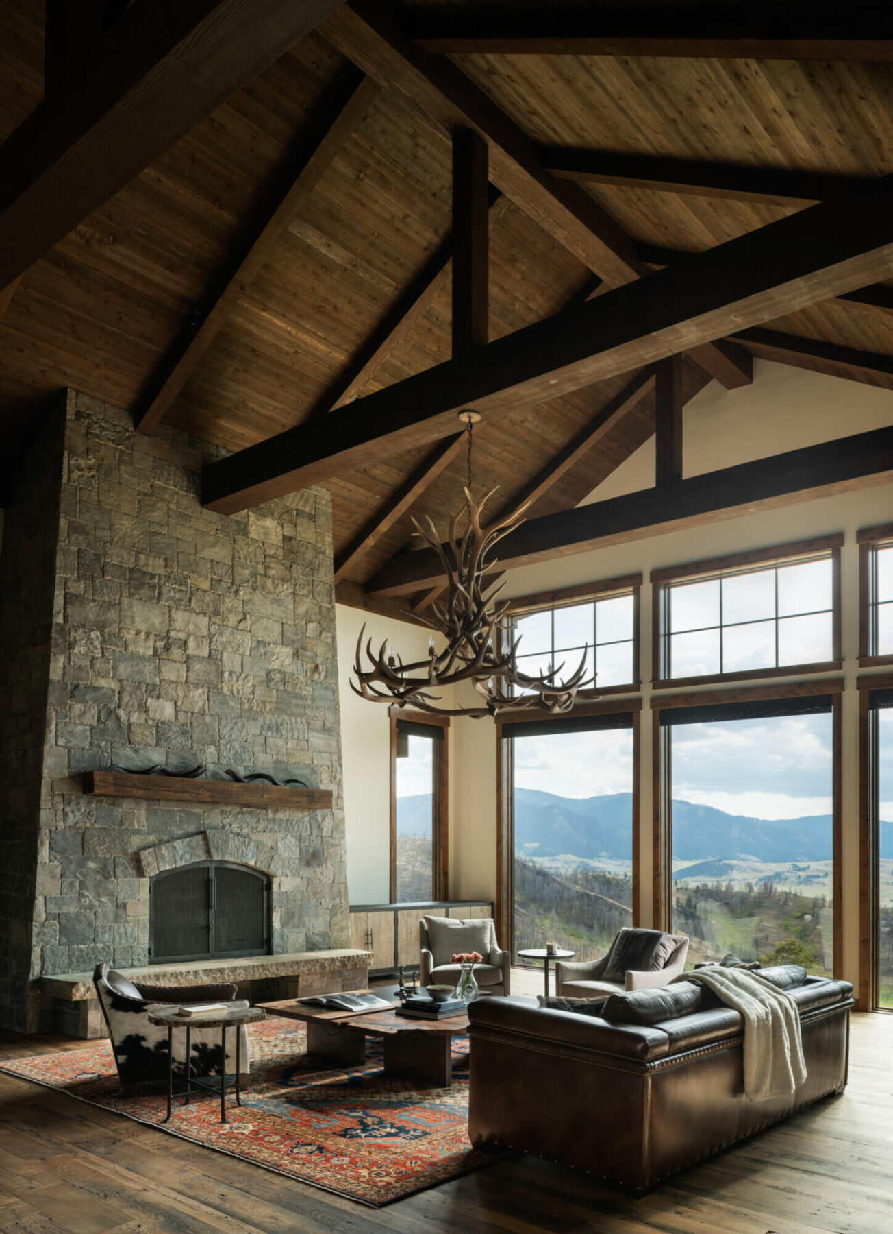 High in the mountains of Montana, this custom-built home stands as a testament to our dedication for quality craftsmanship and design, all the while respecting the land it perches on. Every beam, stone, and finish was chosen to reflect the rugged beauty of its surroundings while offering the comfort and sophistication of modern mountain living. Expansive floor to ceiling windows capture panoramic views of the valley below, while warm natural materials invite the outside in. From concept to completion, our team worked hand in hand with the homeowners, architect, and designer to create a space that feels both elevated and deeply rooted in Montana’s spirit.